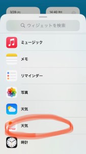 ②ウィジェットを検索で「天気」と入力し、Yahoo!の天気アプリをタップ
