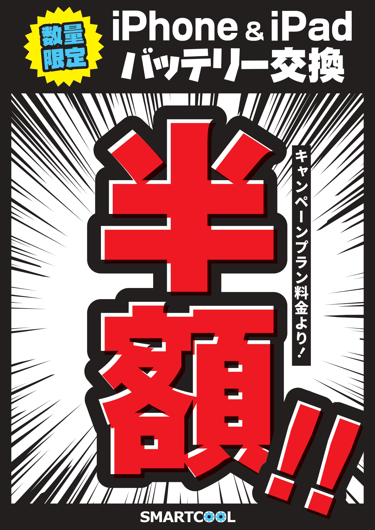 こちらの画面をご提示いただいたお客様限定でiPadのバッテリー交換も半額でさせていただきます!!